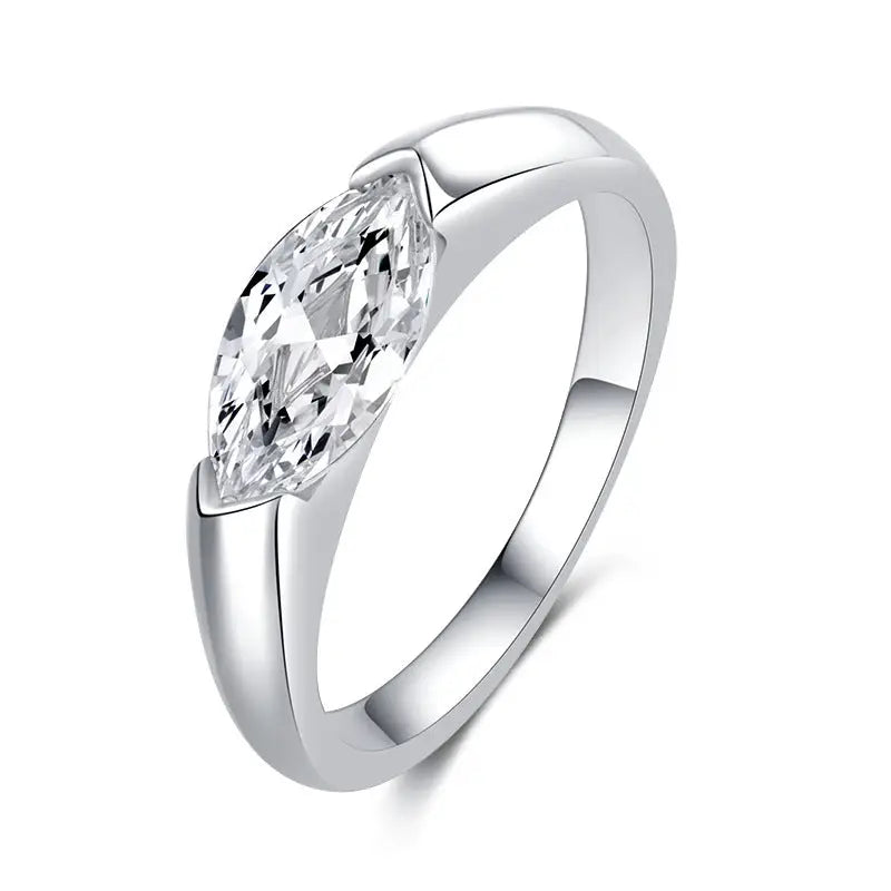 Marquise Moissanite Engagement Ring in 925 Sterling Silver