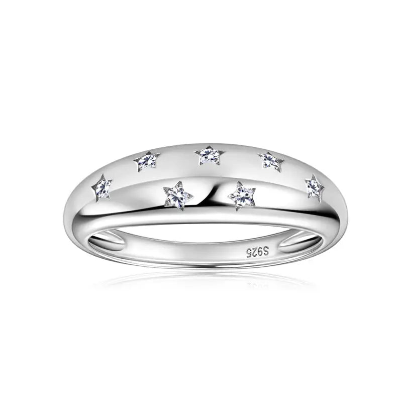 Moissanite Star Wedding Band Ring in 925 Sterling Silver