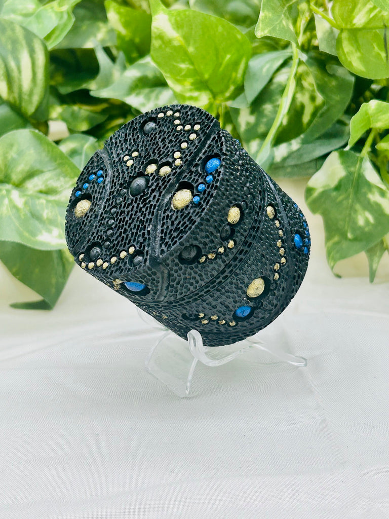 “I have spent 35 years in my day job as a Social Worker, providing service to others. Going to the workshop is “My Turn.” Working at the lathe, carving or coloring a piece is my favorite selfcare and how I recharge my batteries. Wood is my favorite medium. Its natural beauty comes from God, I just try and find it. Often, I have pieces of wood on my shelf for years before they tell me what to make out of them. I hope you enjoy the experience of seeing and touching them as much as I did making them.” - Joe