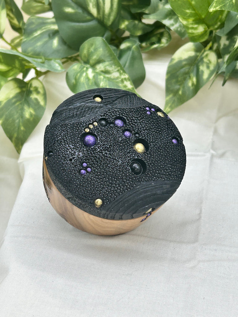 “I have spent 35 years in my day job as a Social Worker, providing service to others. Going to the workshop is “My Turn.” Working at the lathe, carving or coloring a piece is my favorite selfcare and how I recharge my batteries. Wood is my favorite medium. Its natural beauty comes from God, I just try and find it. Often, I have pieces of wood on my shelf for years before they tell me what to make out of them. I hope you enjoy the experience of seeing and touching them as much as I did making them.” - Joe