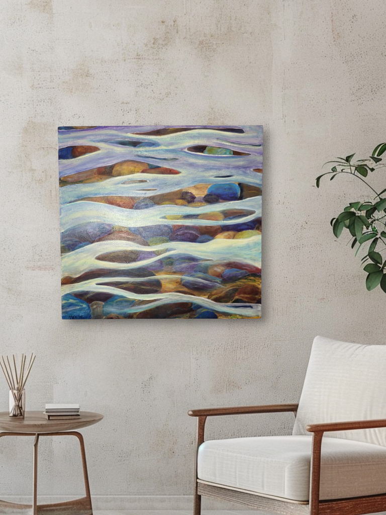 I used water-based oil paints which are the same as oils but Clean with soap and water. I often use the pallet knife and glazing techniques to create more depth. I often use a complimentary color for the initial background to add more life/color into the painting. Everything I do leads me to another idea to try. I consider it constantly growing and I love it." -Marcia Nickols