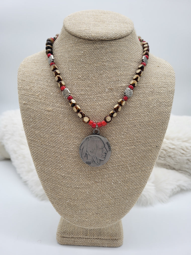 Sterling Buffalo Nickel Pendant & Beaded 18" Necklace - Marcia Nickol