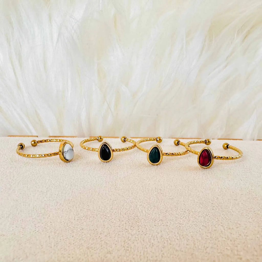 Gem Rings - Gold tone, Adjustable Stainless Steel